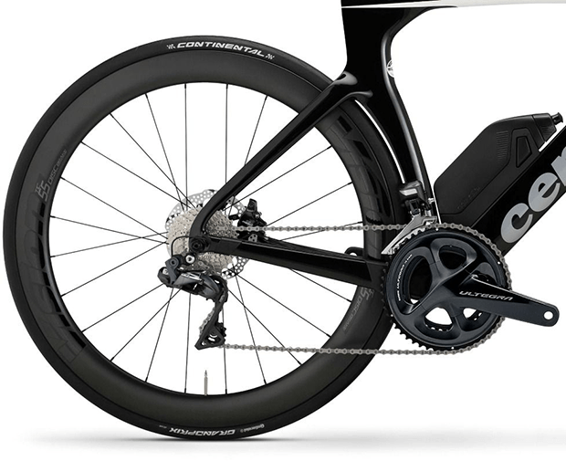 The Di2 Ultegra build is $6,500 and for this you move to a Vision Trimax Carbon aerobar, a more expensive saddle you’re likely to replace, Vision’s own Metron hydration system to match it’s aerobars. In fact, you could almost call this the Vision build. Wheels also are Vision: 55TC Disc. Here, Cervelo *is* making your wheel decision for you.