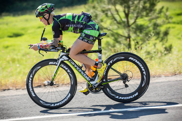 Here is look at the Shimano and Knight Composites equipped Cannondale Slice of 2015 Ironman Coeur D'Alene Champion Heather Jackson of Team Wattie Ink. Sean Wakins had just washed the bike and removed both the custom altered XLAb bento box (featuring zip ties instead of Velcro tabs) and the Speedfil BTA system that was also attached with zip ties. Heather Jackson wanted to have enough liquid nutrition on board especially in such hot conditions, thus the 3 bottle setup. The pictures (except for the final one) were taken by Sue Hutter who had given Heather Jackson and Sean Watkins a home stay in Idaho.