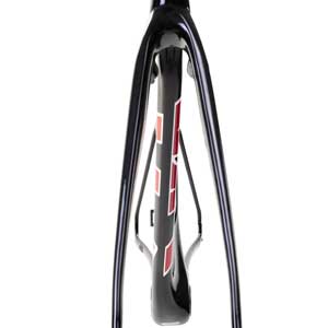 The front caliper hides behind the fork. I'm an agnostic about hiding the front caliper. Whether you're in or aboard a car, a horse, or a bicycle, it's inconvenient when you apply the brakes and stopping is not happening (or happening at the rate you anticipate). Some of these front brake systems designed to improve frame/rider aerodynamics might achieve a small victory at a large cost. Is it the case with this bike? Not necessarily. Rather, I'm whining in general—half the high-end bikes out there seem to have some sort of new and novel front braking system. Just, whatever you buy, make sure your new bike stops to your satisfaction.