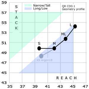 This isn't to say you can't make a bike with 700c wheels that follows this long/low geometric theme in a small size, and an XS in Argon 18 has 700c wheels throughout its size run, yet has a geometry in its smallest size that would fit roughly along the CD0.1's geometric theme generated by the larger three sizes.